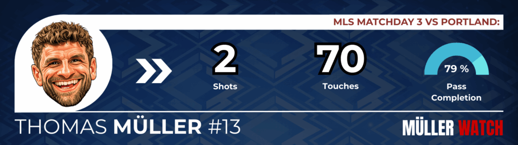 Vancouver’s possession rose to 74% in the second half, but it lacked creativity. The result: just five shots, 0.35 expected goals, and no shot involvement from Müller.